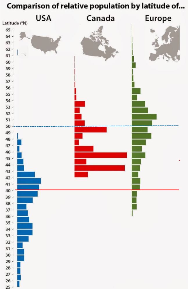 The vast majority of the Earth’s population lives between the 20th and 40th parallel north and south. It seems that right here humans have found the best living conditions relating not only to temperature and food recourses, but also to UV radiation necessary for the production of vitamin D by human skin. An exception to this general rule is Europe.