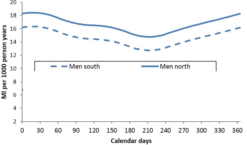 Incidence of myocardial infarction and associated mortality varies by latitude and season: findings from a Swedish Registry Study.