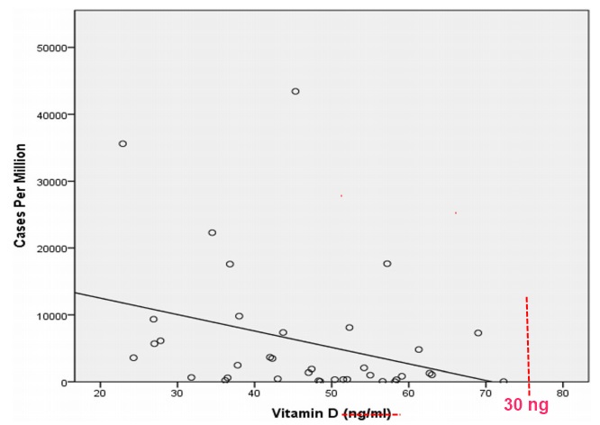 COVID-19 has been declared a global pandemic by WHO on 11 March 2020. Still, very little is known about the potential protective dietary factors for the prevention of infection and mortality due to COVID-19. Keeping in view the scarcity of literature/studies available, in this regards present study was undertaken to assess if there is any correlation between mean levels of Vitamin D in various Asia Pacific countries with the infection and mortality caused by COVID-19. We collected data for mean levels of Vitamin D for 37 Asia Pacific countries for which we have also got the data regarding the morbidity and mortality of COVID-19. The mean levels of Vitamin D were found to have a significant association with the number of cases/million(r = − 0.394, p value = 0.016) and a weak association with the number of deaths/ million (r = − 0.280, p value = 0.093) due to COVID-19. In conclusion, we found a significant relationship between Vitamin D levels with the number of COVID-19 cases. So further clinical trial/study with a large sample size is needed to elucidate the protective role of Vitamin D in COVID-19