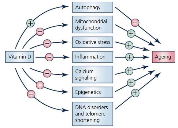 In individual with normal vitamin D levels, these ageing-related processes will occur at lower rates resulting in a reduced rate of ageing and enhanced protection against these age-related diseases.