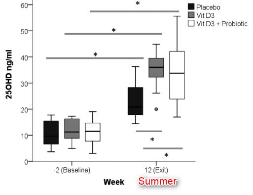 - “Study participants were recruited in the early months of 2014 ( January–April) with most follow-up visits taking place from May to August, most likely explaining the rise in 25OHD in all groups.”