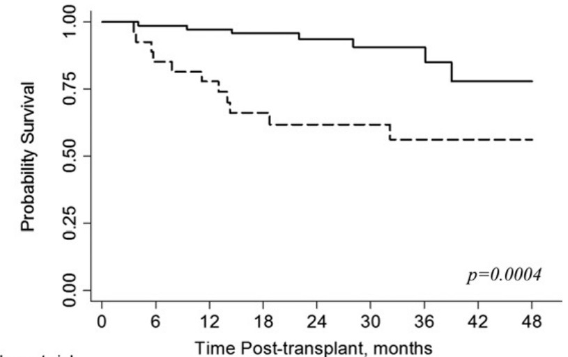 The mortality rate of recipients who remained 25(OH)D-deficient 1 year after transplant