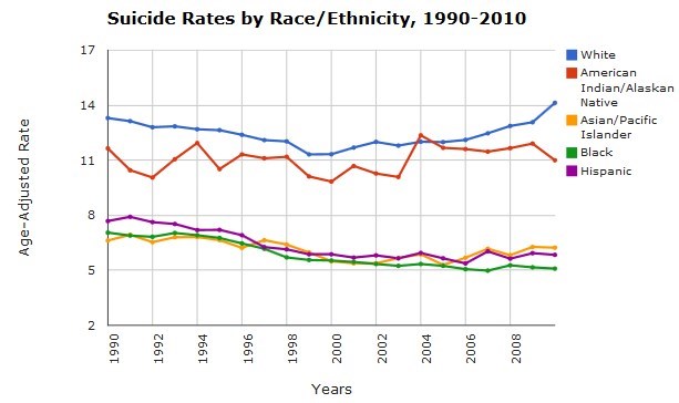 Opposing data: suicide rate for US blacks is less than for whites