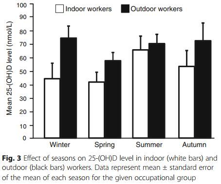 Interestingly - Outdoor workers Vitamin D levels peaked in the winter