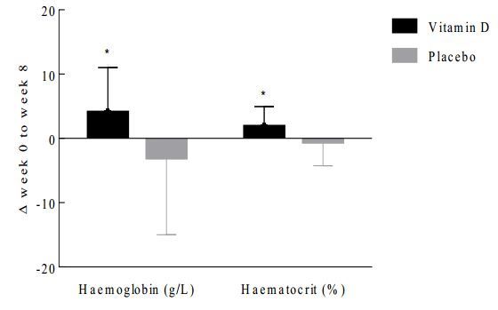 concentration and haematocrit level from baseline to post-intervention in the vitamin D group, but