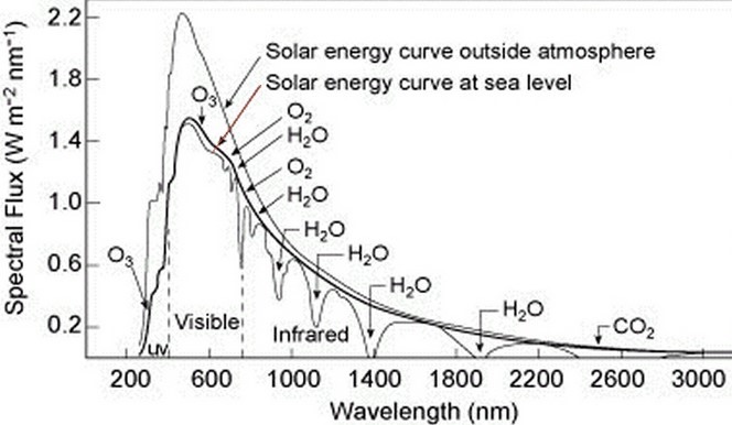 The big dips (reduction in intensity) are due to specific molecules in the atmosphere