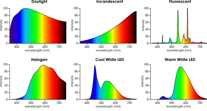 Our eyes are very intelligent sensors, which make a kind of white balance automatically. When you measure or even when you look at colors under a candlelight and this is the only light source around, you will have a full-color rendering. You have the full-color rendering with incandescent lamp, halogen lamp, and you have it with sunlight as well.