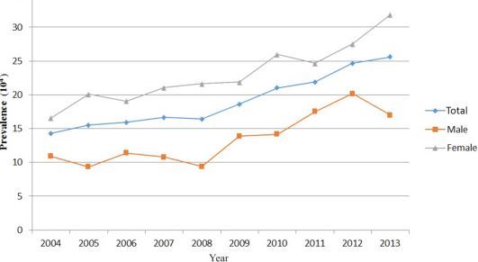 - Trends in the prevalence of diagnosed temporomandibular disorder from 2004 to 2013 using a Nationwide health insurance database in Taiwan Sept 2017