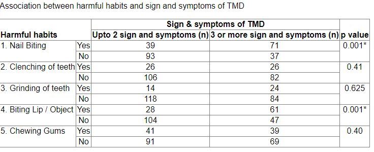 - Association Between Harmful Oral Habits and Sign and Symptoms of Temporomandibular Joint Disorders Among Adolescents Aug 2015. free PDF online