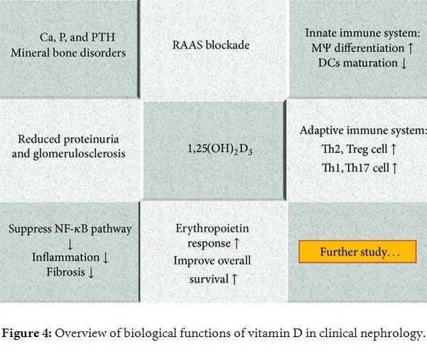 Vitamin D and its analogues are widely used as treatments by clinical nephrologists, especially when treating chronic kidney disease (CKD) patients with secondary hyperparathyroidism. As CKD progresses, the ability to compensate for elevations in parathyroid hormone (PTH) and fibroblast growth factor-23 and for decreases in 1,25(OH)2D3 becomes inadequate, which results in hyperphosphatemia, abnormal bone disorders, and extra-skeletal calcification. In addition to its calciotropic effect on the regulation of calcium, phosphate, and parathyroid hormone, vitamin D has many other noncalciotropic effects, including controlling cell differentiation/proliferation and having immunomodulatory effects. There are several immune dysregulations that can be noted when renal function declines. Physicians need to know well both the classical and nonclassical functions of vitamin D. This review is an analysis from the nephrologist's viewpoint and focuses on the relationship between the vitamin D and the immune system, together with vitamin's clinical use to treat kidney diseases.