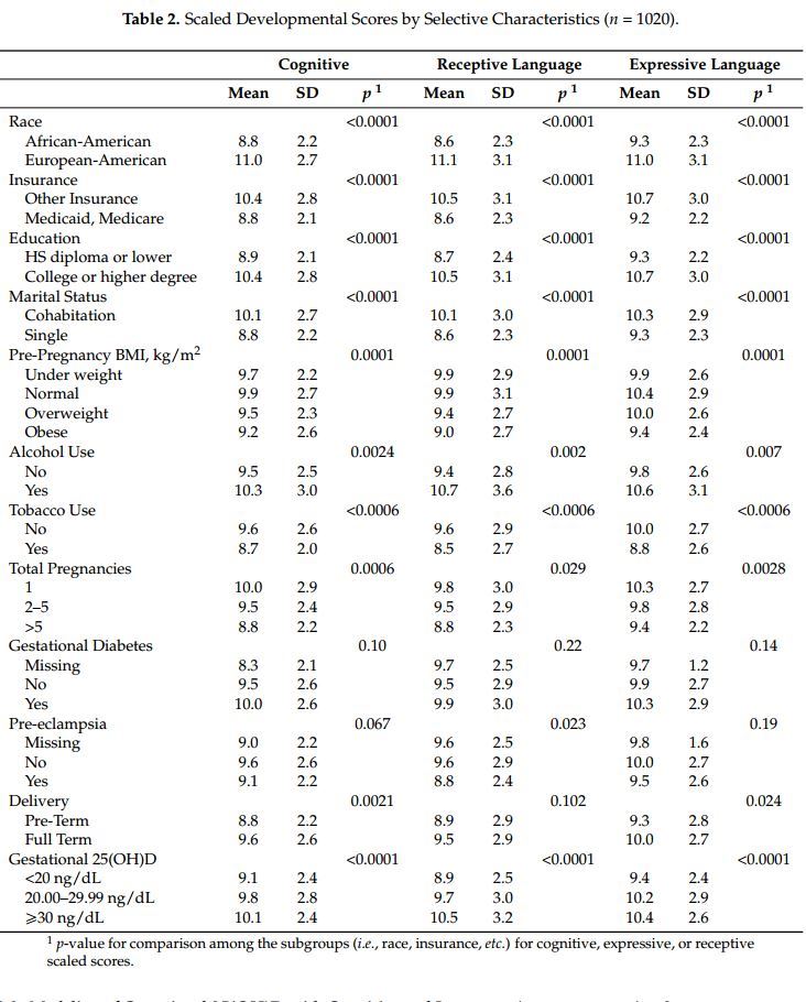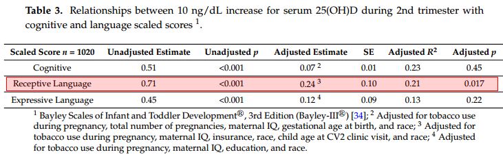 Gestational Vitamin 25(OH)D Status as a Risk Factor for Receptive Language Development: A 24-Month, Longitudinal, Observational Study.