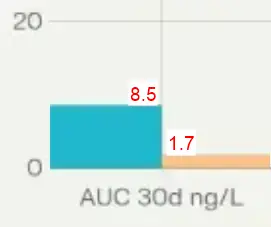 The area under the curve (AUC) for 30 days was 8.5 day·ng/L for liposomal versus 1.69 day·ng/L for standard formulations 2.