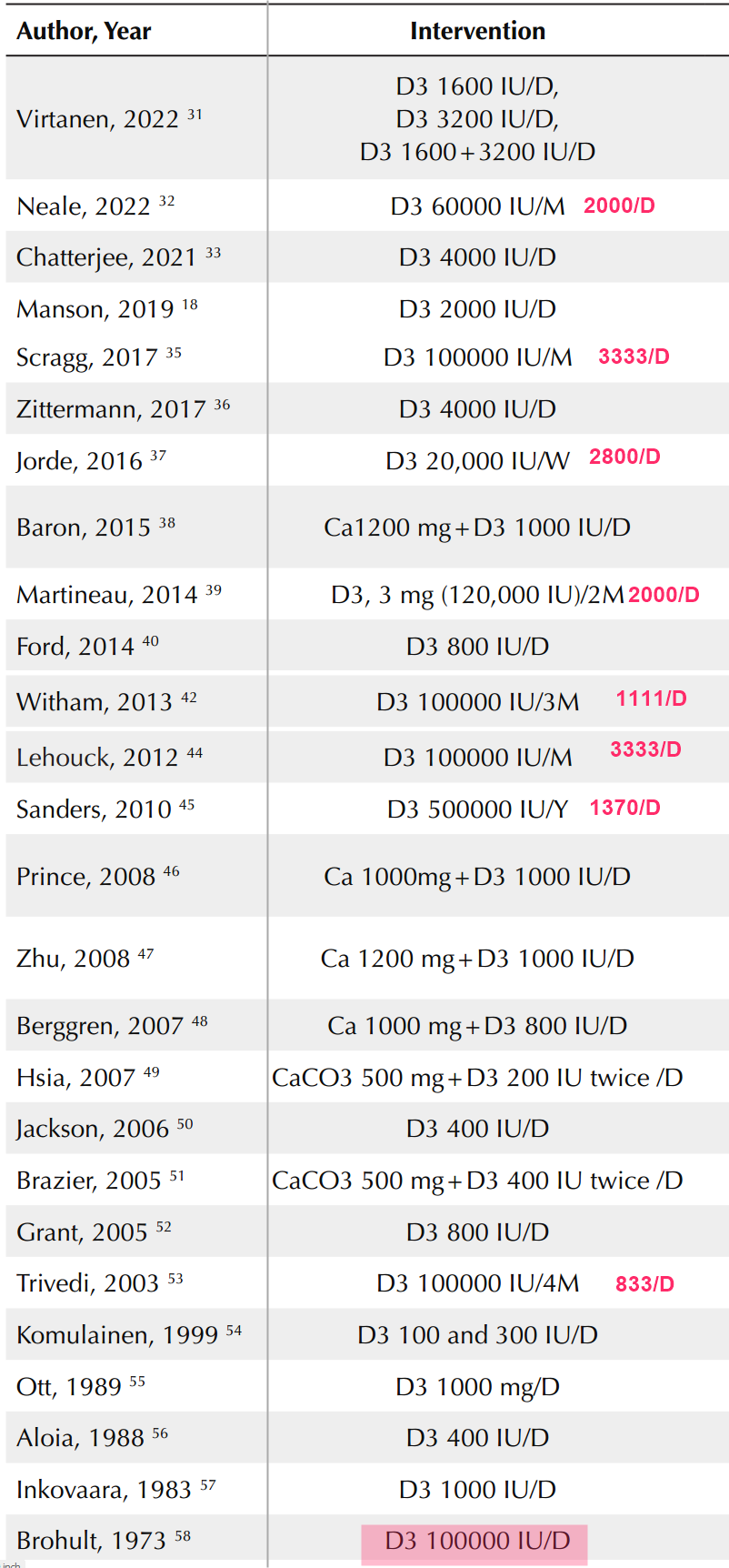 Only 1 RCT used more than 3,300 IU of Vitamin D3 daily