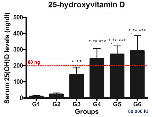 Average of 20,000 IU/kg of body weight of vitamin D daily (G5) for 16 weeks was enough
