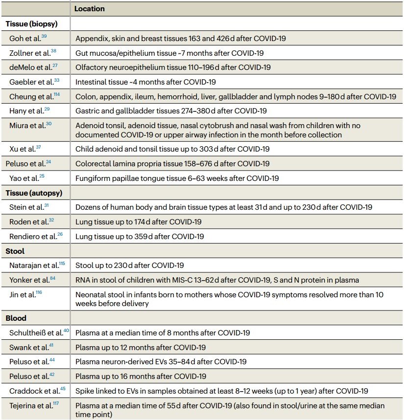 - Which PASC cell and tissue types harbor SARS-CoV-2 RNA or protein?