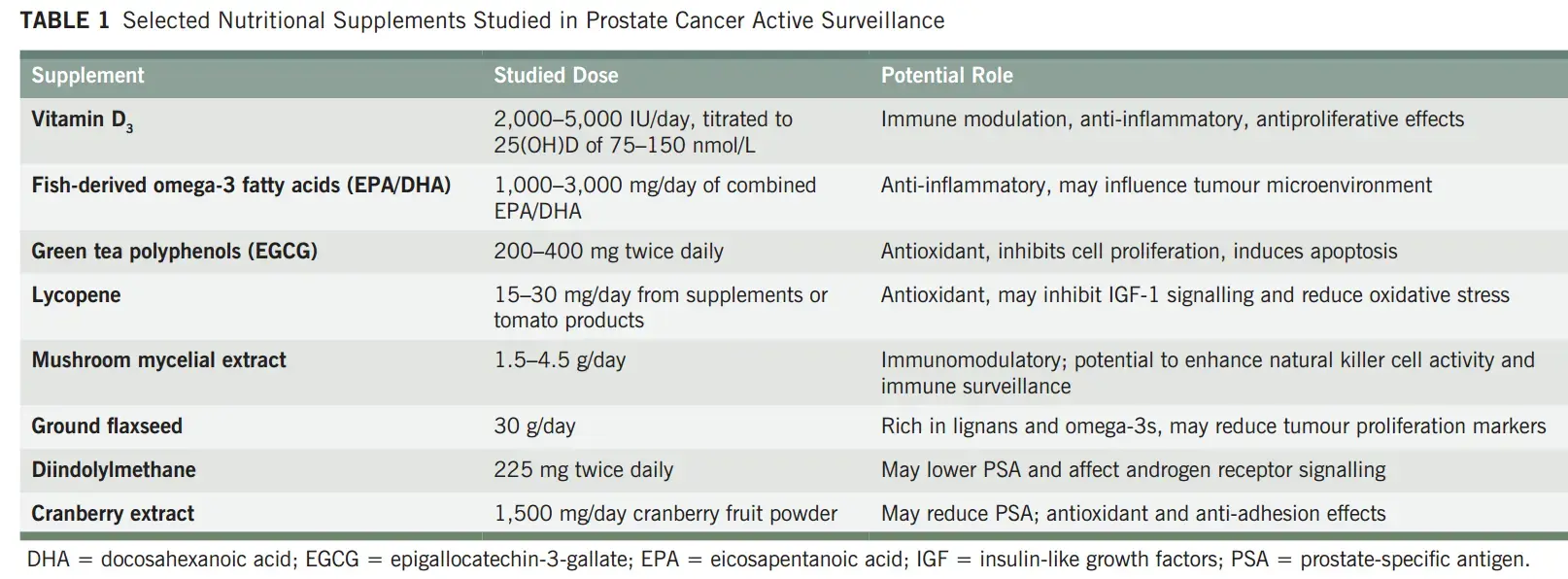 Conclusion: While no single intervention is proven to prevent prostate cancer progression, a comprehensive, personalized approach, including diet, exercise, and additional integrative therapies, may optimize outcomes in motivated patients. Future research should focus on evaluating multimodal integrative strategies in AS.