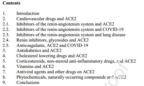 We also describe evidence on the effect of several vitamins, phytochemicals, and naturally occurring compounds on ACE2 expression and activity in various tissues and disease models.