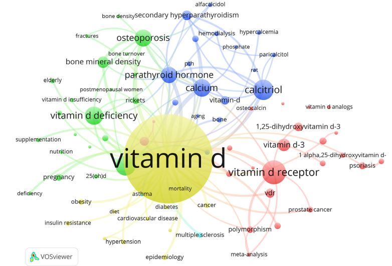 Despite the numerous associations of vitamin D with health and disease, vitamin D deficiency is still common from a global perspective. While basic research, clinical and preventive activities grow constantly in vitamin D research, there is no in-depth analysis of the related global scientific productivity available so far.