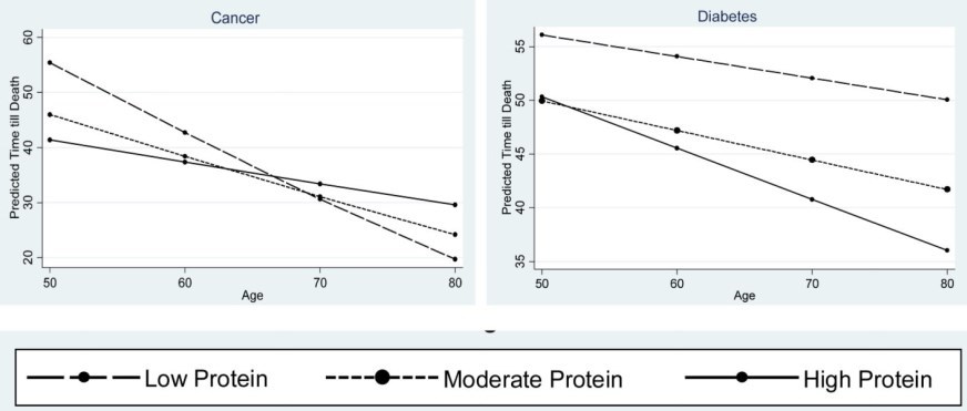 - M E Levine, J A Suarez, S Brandhorst, P Balasubramanian, C W Cheng, F Madia, L Fontana, M G Mirisola, J Guevara-Aguirre, J Wan, G Passarino, B K Kennedy, M Wei, P Cohen, E M Crimmins, V D Longo.Low protein intake is associated with a major reduction in IGF-1, cancer, and overall mortality in the 65 and younger but not older population. Cell Metab. 2014 Mar 4;19(3):407-17.