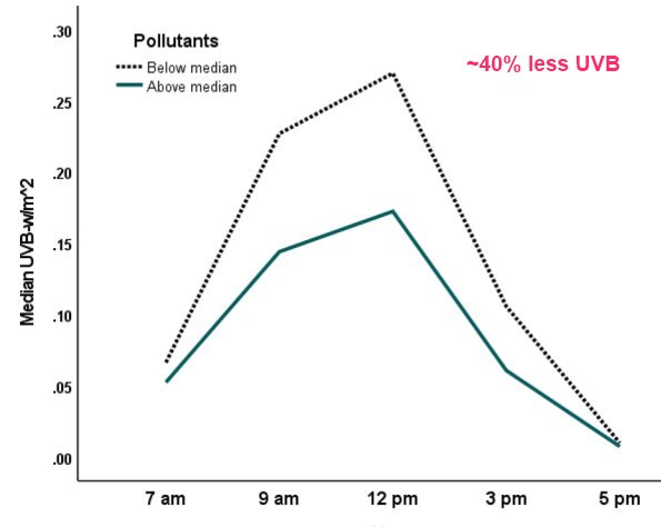 Fact: Pollution attenuates the amount of UVB getting to the skin (but by only a few percent)