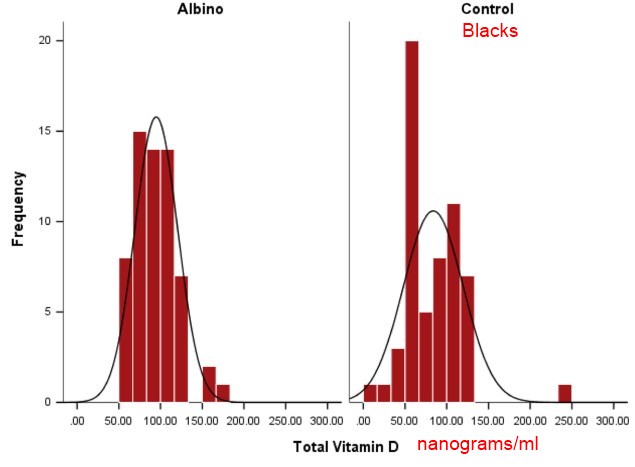 This study contests the claim that black Africans including albinos have low vitamin D levels. Albinos living in South East Nigeria have significantly higher vitamin D levels than their pigmented counterparts.Nigerian albinos have vitamin D levels of 96 ng – Oct 2019Printer Friendly Follow this page for updates17349 visitors, last modified 23 Mar, 2021, This page is in the following categories (# of items in each category)Attached files