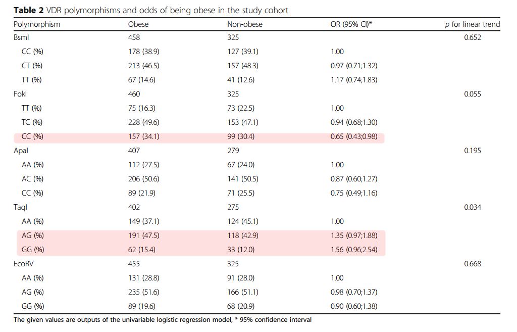 - Obesity in 700 young adults associated with a poor Vitamin D Receptor – Jan 2018