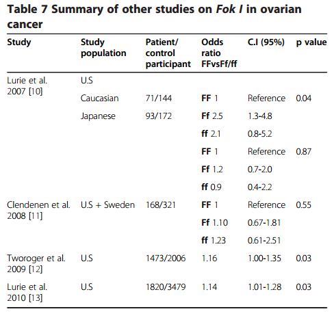 Ovarian Cancer 5.8 X more likely if both low vitamin D and Fok1 gene change – May 2013Printer Friendly Follow this page for updates11118 visitors, last modified 14 Dec, 2017, This page is in the following categories (# of items in each category)Attached files