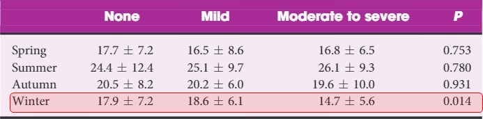 Results: Vitamin D level was lowest in winter. According to the International Prostate Symptom Score (IPSS) and Overactive Bladder Symptom Score (OABSS), the severity of LUTS peaked in winter. There were no seasonal differences between prostate volume, maximum urinary flow rate (Qmax ) and post-void residual urine volume (PVR). For all patients, multivariate analysis showed that lower vitamin D level was significantly associated with higher total OABSS, whereas it was not associated with prostate volume, Qmax , PVR or total IPSS. In winter, lower vitamin D level was significantly associated with higher total OABSS based on multivariate analysis, whereas it was not during other seasons. In patients with vitamin D deficiency, the total OABSS significantly decreased after vitamin D replacement. The greatest improvement in total OABSS was associated with lower pre-treatment total OABSS and higher post-treatment vitamin D level.