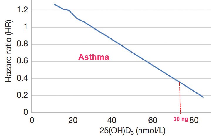- Asthma may be treated by Vitamin D if more than 40 ng for 12 months – Sept 2018