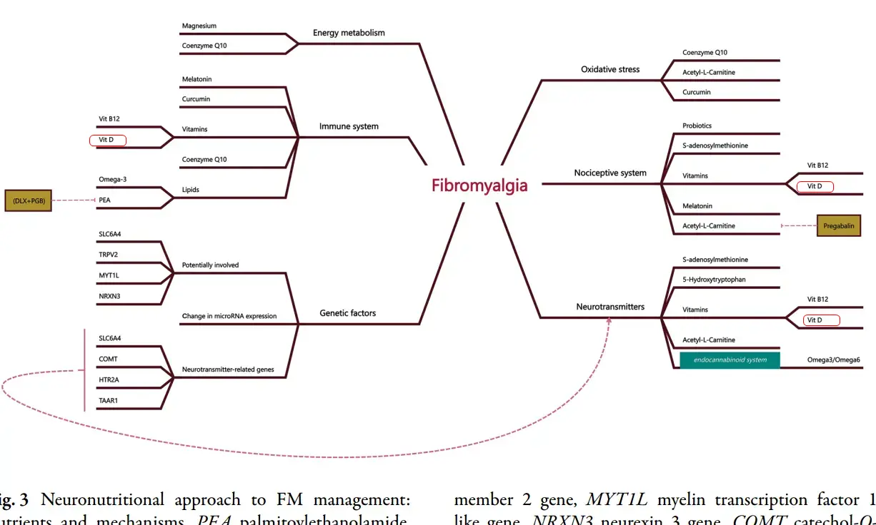 - Vitamin D is one of 10 nutritional supplements which appear to treat Fibromyalgia (combo needed?) – July 2024