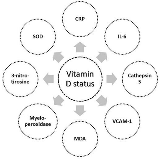 The majority of the studies (five out of eight) found association of vitamin D status with biomarkers of oxidative stress and inflammation such as