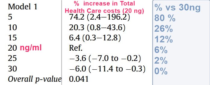 - VA showed increased vitamin D associated with lower health costs - Lancet May 2012