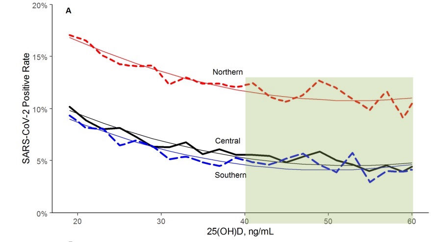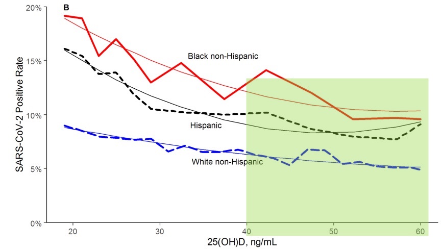 - Rate of COVID-19 test positive is 40 pcnt lower if high vitamin D (192,000 people) - Holick Sept 2020