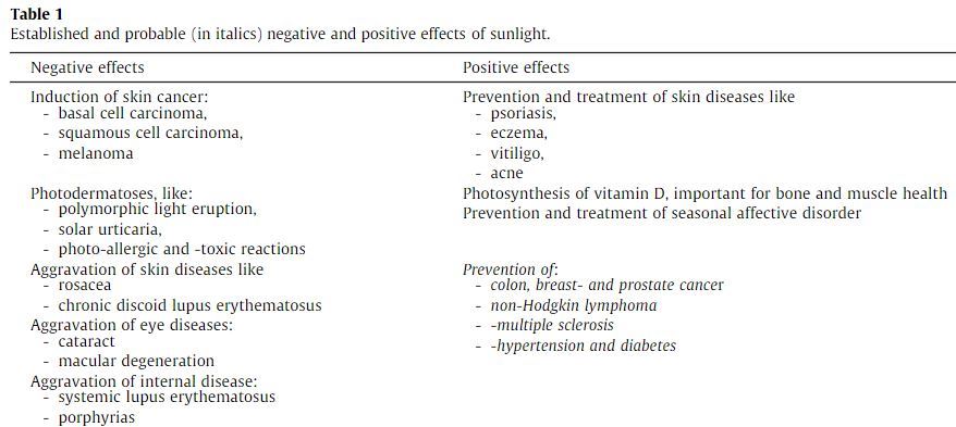 Since it was discovered that UV radiation was the main environmental cause of skin cancer, primary prevention programs have been started. These programs advise to avoid exposure to sunlight. However, the question arises whether sun-shunning behaviour might have an effect on general health. During the last decades new favourable associations between sunlight and disease have been discovered. There is growing observational and experimental evidence that regular exposure to sunlight contributes to the prevention of colon-, breast-, prostate cancer, non-Hodgkin lymphoma, multiple sclerosis, hypertension and diabetes. Initially, these beneficial effects were ascribed to vitamin D. Recently it became evident that immunomodulation, the formation of nitric oxide, melatonin, serotonin, and the effect of (sun)light on circadian clocks, are involved as well. In Europe (above 50 degrees north latitude), the risk of skin cancer (particularly melanoma) is mainly caused by an intermittent pattern of exposure, while regular exposure confers a relatively low risk. The available data on the negative and positive effects of sun exposure are discussed. Considering these data we hypothesize that regular sun exposure benefits health.