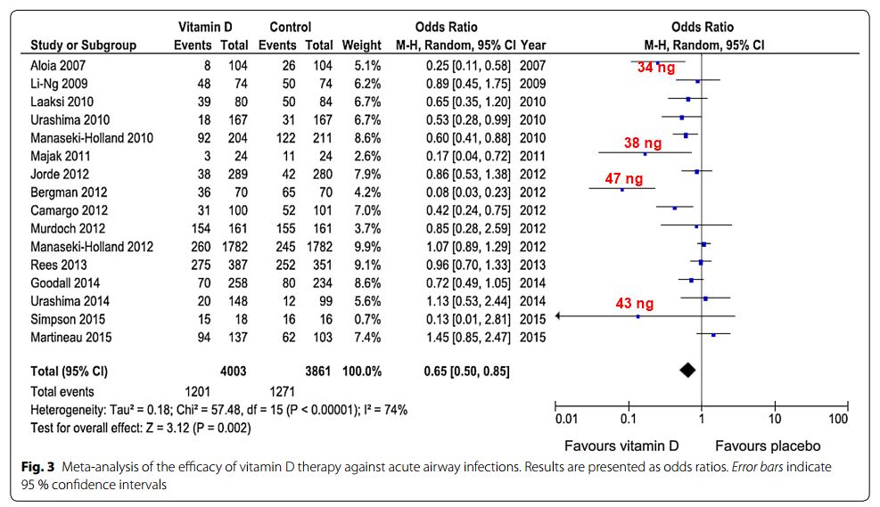 - Lower respiratory tract infections in children associated with Low Vitamin D – meta-analysis May 2016