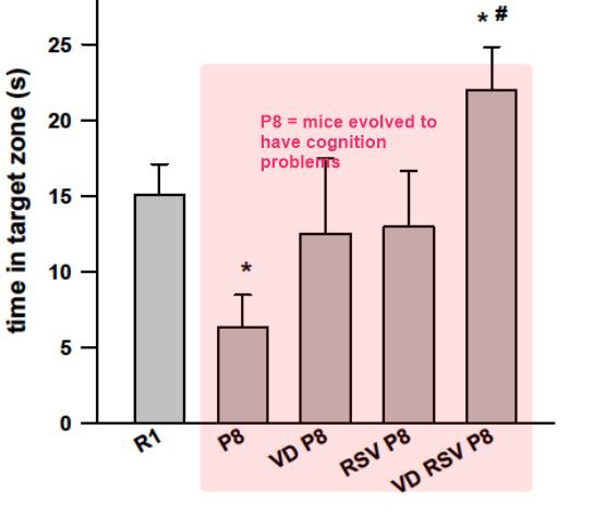 P8 (evolved to have poor cognition) did much worse than regular mice