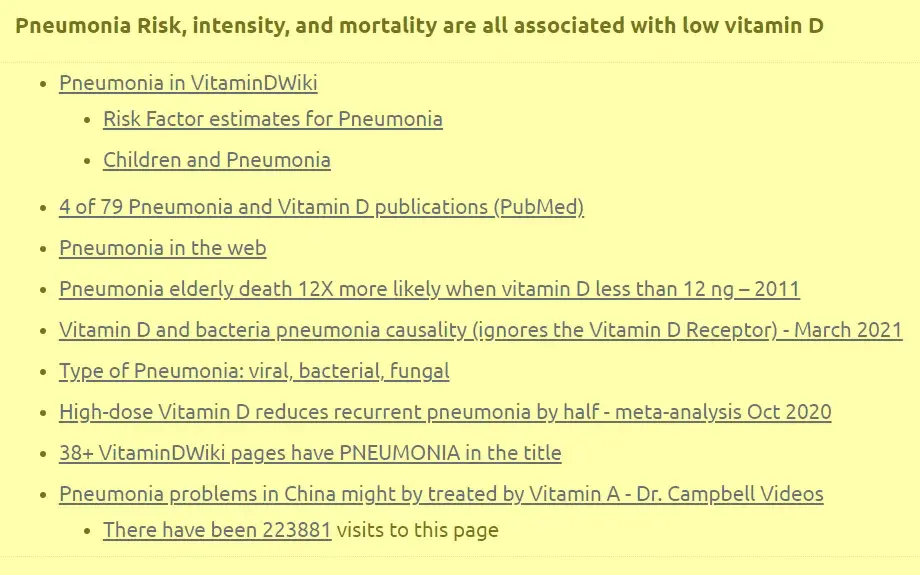 VitaminDWiki - Pneumonia and low vitamin D - many studies