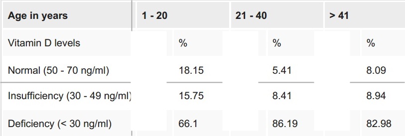 "The cut-off levels of vitamin D level are divided into the following ranges: