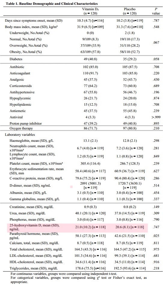 Importance: Patients with COVID-19 may exhibit 25-hydroxyvitamin D deficiency,but the beneficial effects of vitamin D3 supplementation in this disease remain to be proven by randomized controlled trials.
