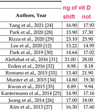 Shift Work and Serum Vitamin D Levels: A Systematic Review and Meta-Analysis