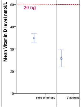 2) Smoking injures the body, and vitamin D is used up in repairing the body