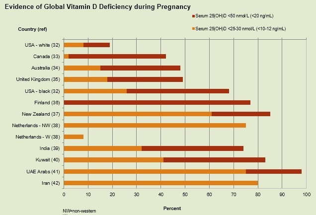 0:30:47.1 Wagner: And if you're used to using nanomoles per litre, you just have to multiply the number of nanograms per mL by 2.5 to get nanomoles per litre. We also found that compared to White Caucasian women, African-American women were more than 20 times more likely to be Vitamin D deficient. And if we compare Hispanic women to White women, we see that Hispanic women are more than two times likely to have Vitamin D deficiency. Next slide. So it's not just an American problem though, it's a global health problem. And this is shown in the next slide. So this is a review that we published in 2012, and it really hasn't changed. And what you see is... And we talk about... Some people say profound deficiency is less than 10-12. We consider less than 20 really significant deficiency. But if you use those parameters, what you see here is that even in areas of the world where they have plenty of sunshine, they're along the equator, if there is a cultural reason to cover up for religious or cultural reasons and have less sunlight exposure, or in areas of the world where individuals have darker skin pigmentation, you see much more deficiency.