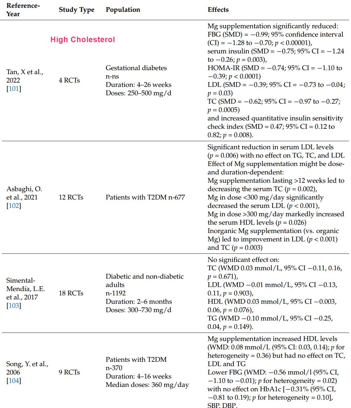 Magnesium and High Cholesterol Meta-analyses