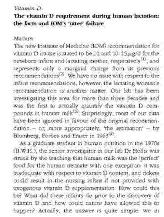 • The vitamin D requirement during human lactation: the facts and IOM's ‘utter’ failure;