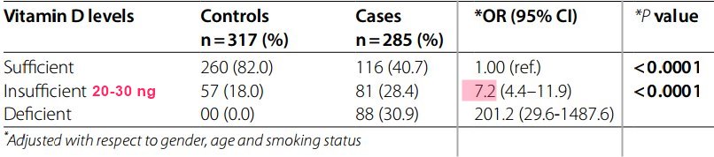 - Psoriasis reduced for those getting Vitamin D levels above 50 ng – RCT Feb 2018