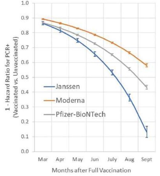 VA study found all vaccines dropped in effectiveness after 6 months, one down to 13% - Nov 4, 2021