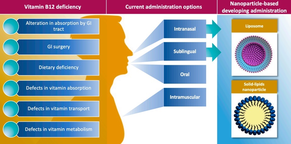 Considering these aspects, more precise methods of VitB12 administration that may increase absorption, prolong its effects (also in the case of a low dose) and improve its specific deliver to target organs is needed.