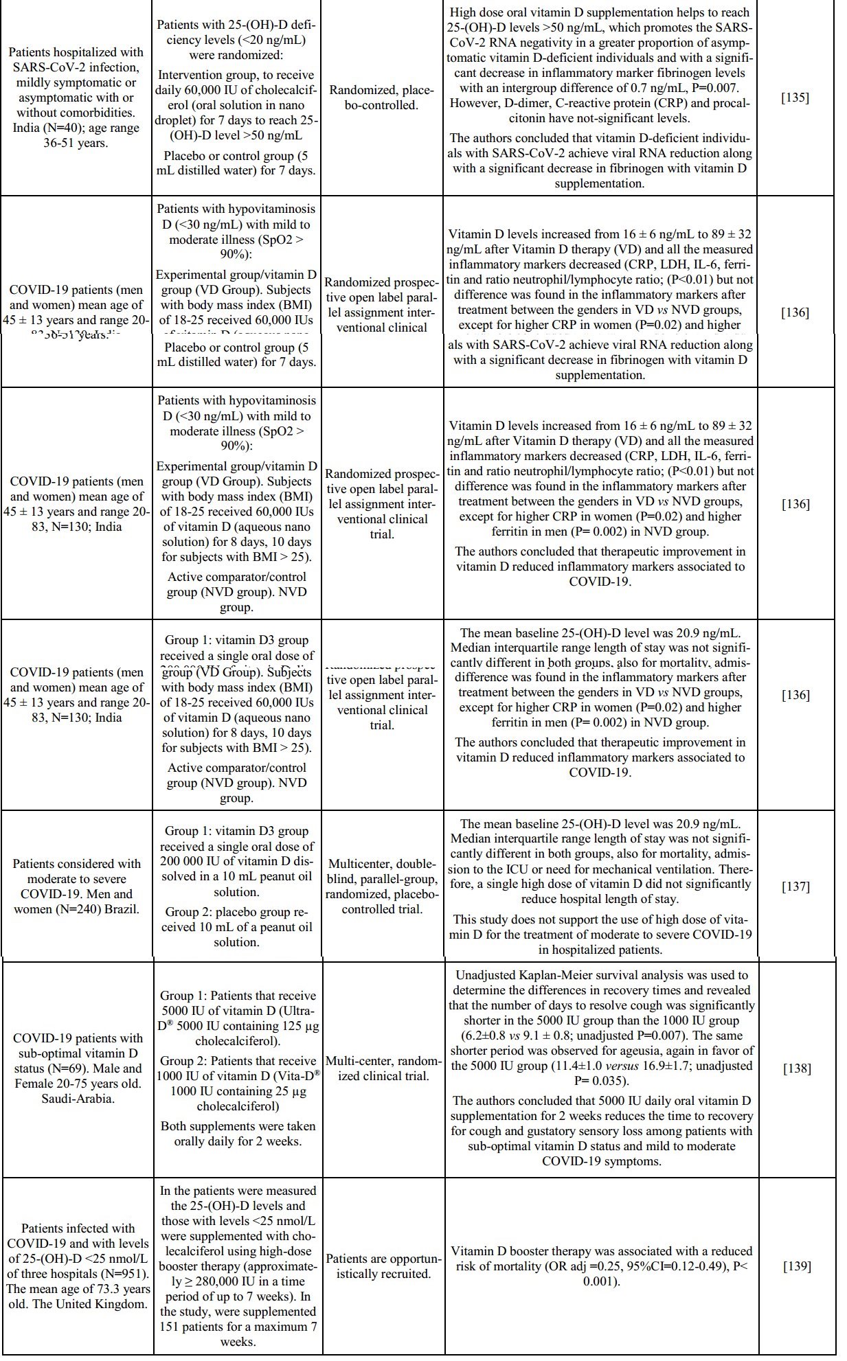 Table 1. Therapeutic effects of vitamin D in COVID-19 in clinical trials
