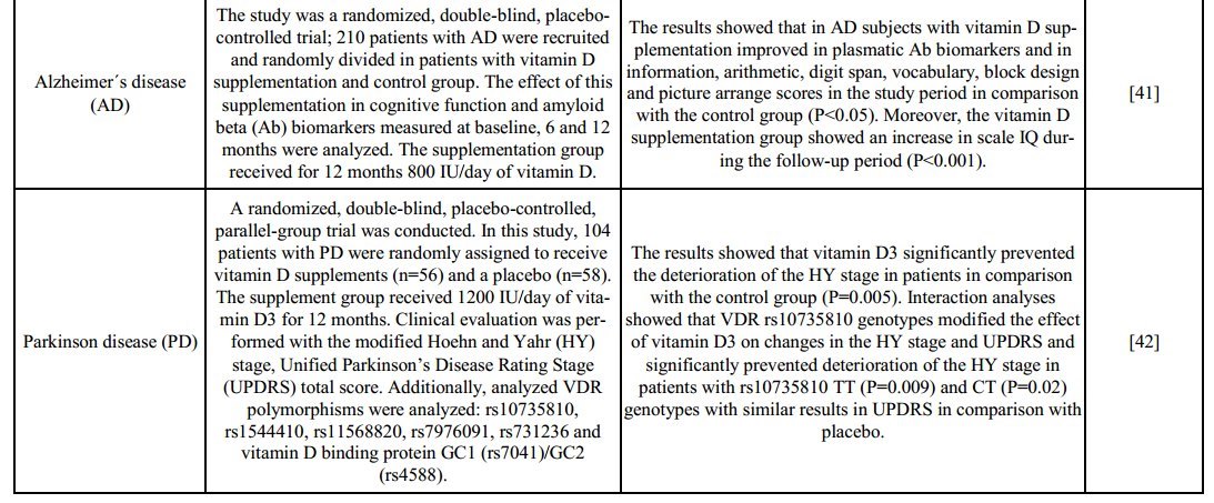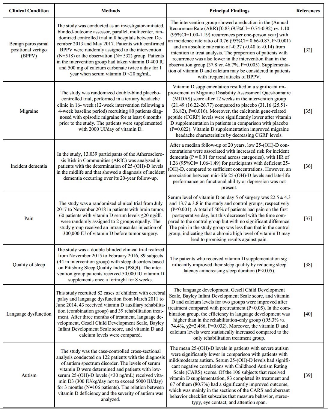 Table 2. The neuroprotective role of vitamin D in some clinical conditions