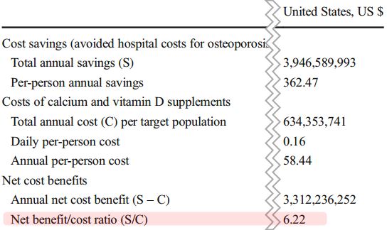 $6 hospital cost saved for every $1 of cost for Calcium and Vitamin D